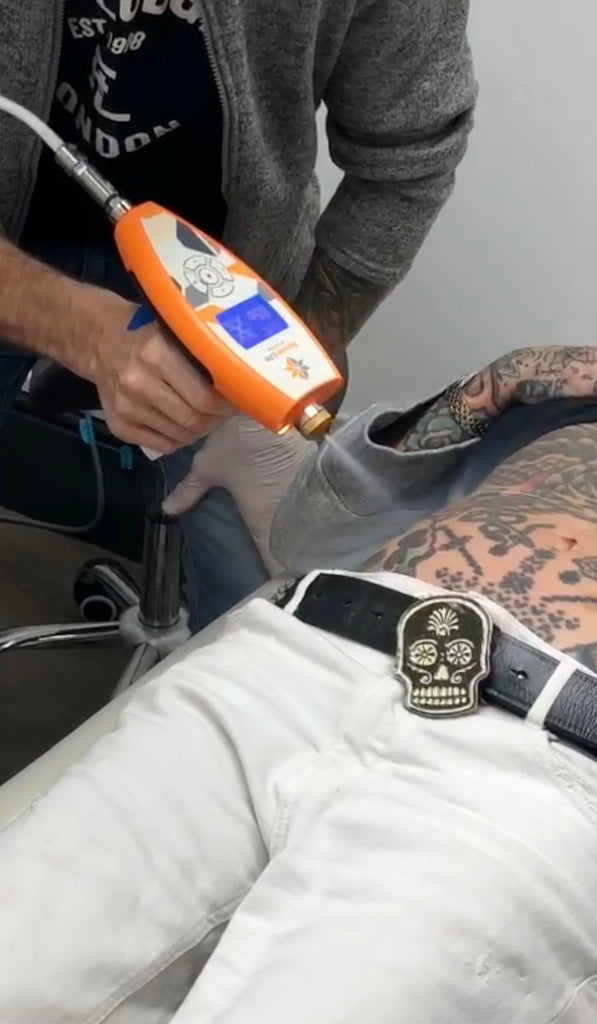 Local cryotherapy is a more powerful and efficient alternative to traditional ice baths. Unlike whole-body cryotherapy, which triggers an internal systemic anti-inflammatory response by stimulating cold receptors all over the body, local cryotherapy lets us target a specific location.