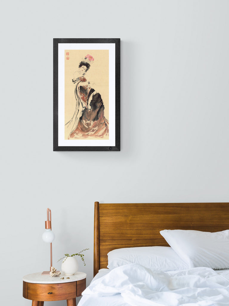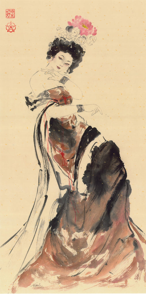 Dancing queen, young and sweet only 17. Loving the energy in this painting. Painted with traditional brushes and watercolour on dyed Xuan paper with gold flecks. Mounted and ready to post and frame. This artwork is both classic and modern, creating a unique yet timeless look. We're sure it's to be the perfect addition to any decor.