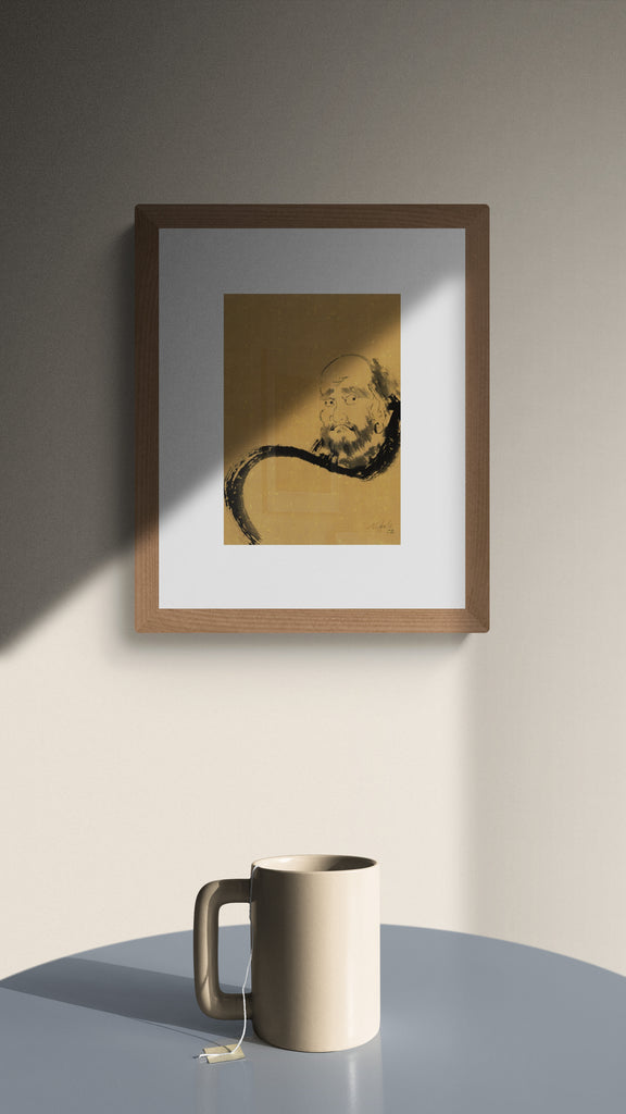 This A5 print showcases Nikole's minimalist black and grey painting of a Daruma, rendered in a Chinese spontaneous style. Focusing on the head, the artwork is simple yet powerful, capturing the essence of the Daruma with bold, flowing brushstrokes. The minimal design emphasizes the figure's iconic expression of resilience and perseverance, offering a sense of strength and calm in its understated form. This print is perfect for those who appreciate the beauty of simplicity and traditional influences.
