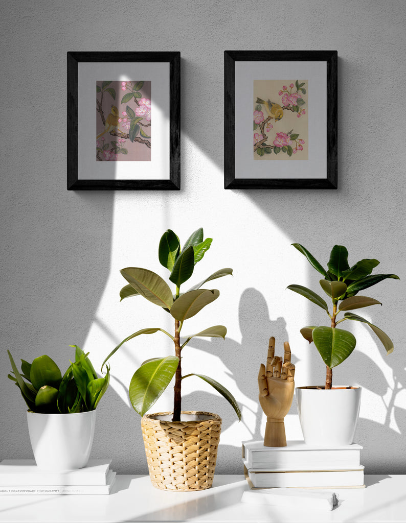 Buy two of the happy yellow birds perched on a blossom branch for only £30