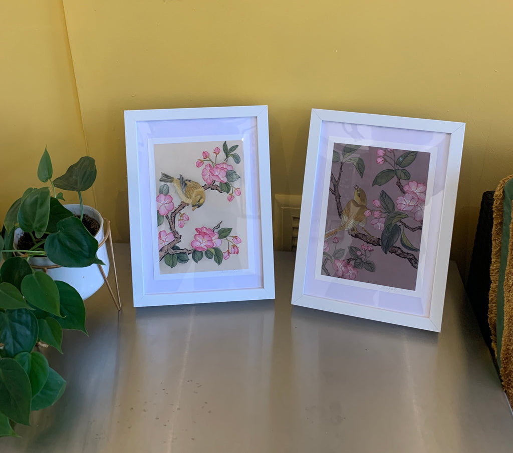 Set Of Two Yellow Birds Prints